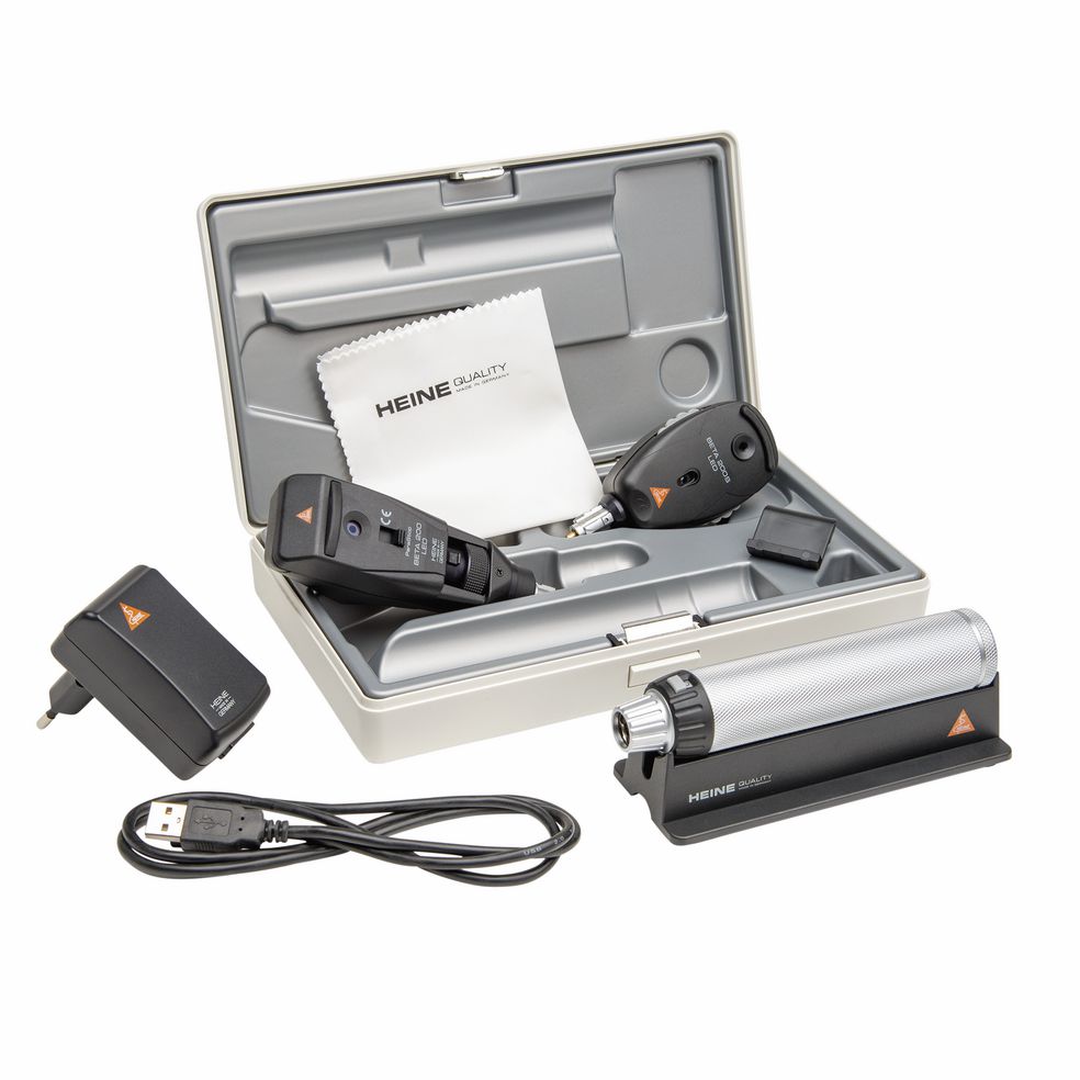 Heine BETA 200S Oftalmoscoop en Heine Beta 200 Streak Retinoscoop op LED-basis en oplaadbaar via USB is een complete set bestaande uit: