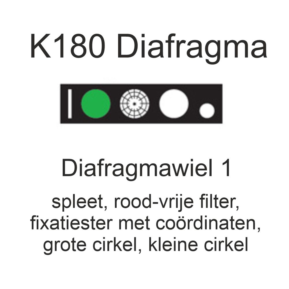- Keuze uit 5 openingen. Voor zowel grote als kleine pupillen. Keuze uit fixatie ster of de blauwe filter voor corneaonderzoek.
